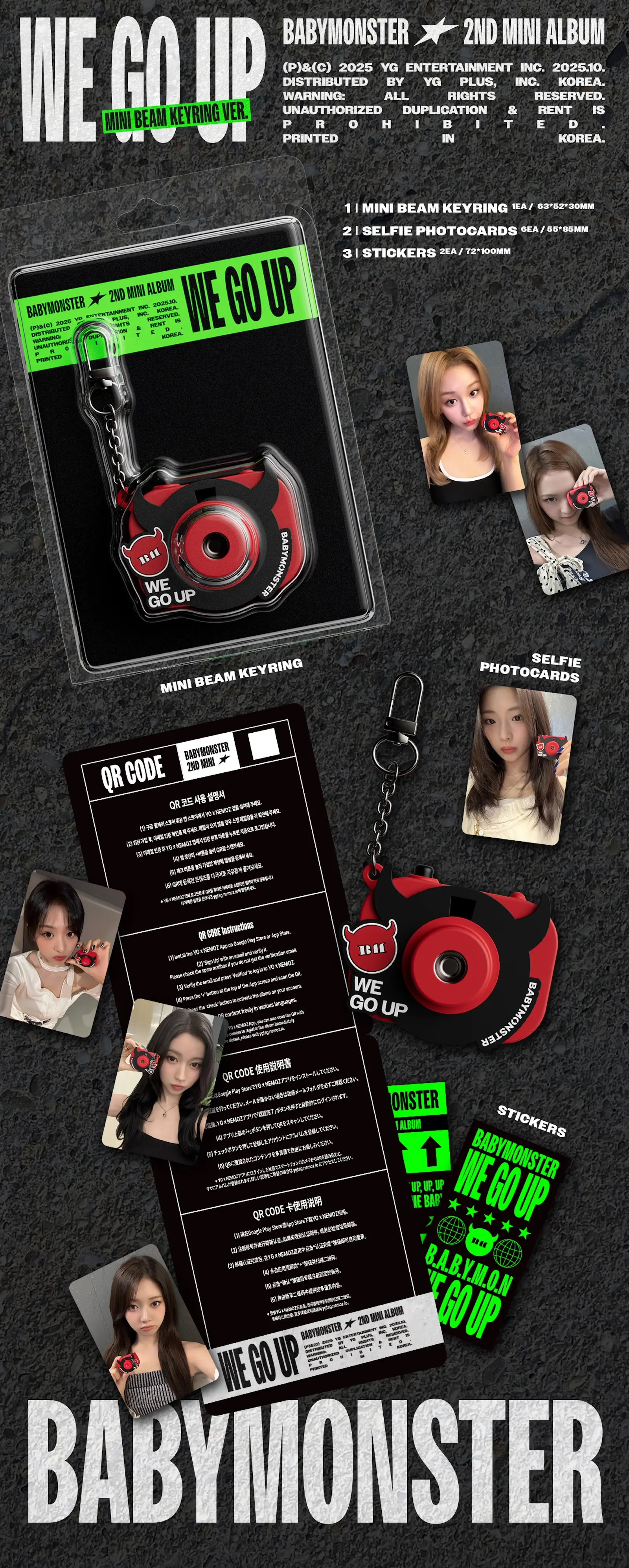<商品内容>・ミニビームキーリング 1ea・セルフィーフォトカード 6ea・ロゴステッカー 2ea<TRACKLIST>1. WE GO UP2. PSYCHO3. SUPA DUPA LUV4. WILD